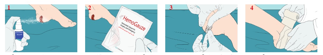 - با دست یا گاز استریل، فشار ملایم وارد کنید تا خونریزی بند بیاید.
